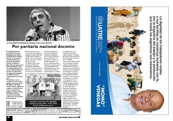 El Consejo Directivo de la Unión Docentes Argentinos, que lidera Sergio Romero, advierte que“ de no convocarse la Paritaria Nacional Docente para discutir salarios el Gobierno Nacional nos impone a los docentes realizar todas las medidas legítimas de acción sindical incluida el derecho constitucional de huelga, que empezará con 48 hs. de paro y movilizaciones en todo el país”.“ El Gobierno cae en infracción al marco legal vigente-art. 10 de la Ley N º 26075 y Dec. Regl. 457 / 07- ante la negativa de negociar el salario inicial, lo que constituye una flagrante práctica desleal. Asimismo, estamos evaluando las posibles implicancias en el ámbito de la ley penal”.