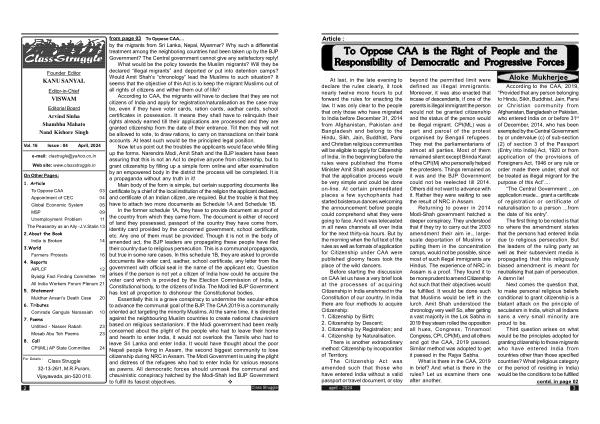 To Oppose CAA is the Right of People and the Responsibility of Democratic and Progressive Forces