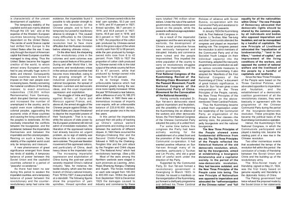 As a result of the imperialist aggression and the wars among the warlords , the development of China ’ s social productive forces was seriously hampered and disrupted . Industry and commerce were ruined and the people impoverished . This impelled the entire population of the country to carry on revolutionary struggles against the imperialists and the warlord governments . First National Congress of the Kuomintang . Revival of the Working-Class Movement and the Peasant Movement . Fourth National Congress of the Communist Party of China . Movement for the Convocation of the National Assembly :