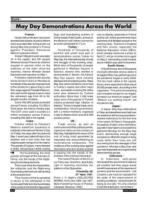 The recent Plenum of the CC of our Party was , therefore , absolutely right in rejecting resolutely the platform of the Opposition . Pravda No . 90 , 21 st April , 1927 . [ From J . V . Stalin ’ s COLLECTED WORKS . Vol . 9 , Dec . 1926- July 1927 , State Publishing House of Political Literature , Moscow , 1948 .] was on display , especially in France and the UK , where governments have launched a full-fledged assault on the working class . Teachers in England and their unions , especially the National Education Union ( NEU ), which already observed a strike on April 27 , will go on strike once again on May 2 , demanding a fully funded , above-inflation pay raise for teachers . South Korea :