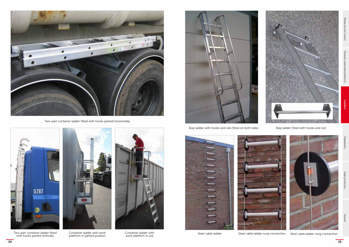 Two-part container ladder fitted with hooks parked horizontally