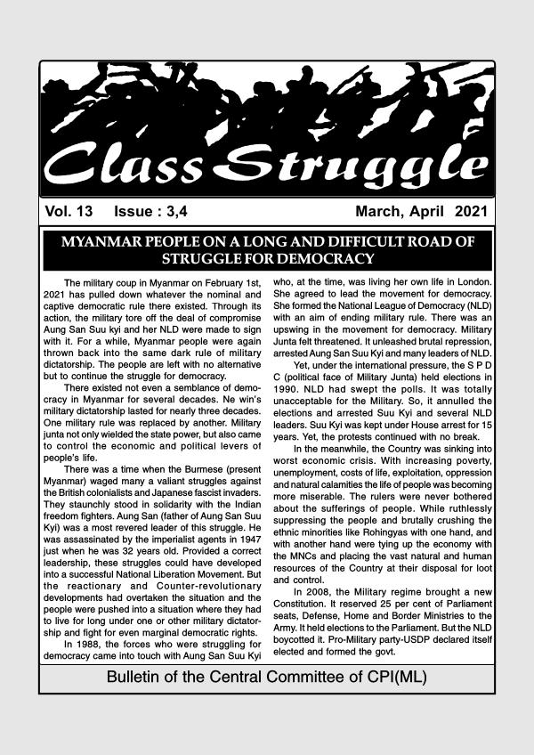 The military coup in Myanmar on February 1st , 2021 has pulled down whatever the nominal and captive democratic rule there existed . Through its action , the military tore off the deal of compromise Aung San Suu kyi and her NLD were made to sign with it . For a while , Myanmar people were again thrown back into the same dark rule of military dictatorship . The people are left with no alternative but to continue the struggle for democracy .
