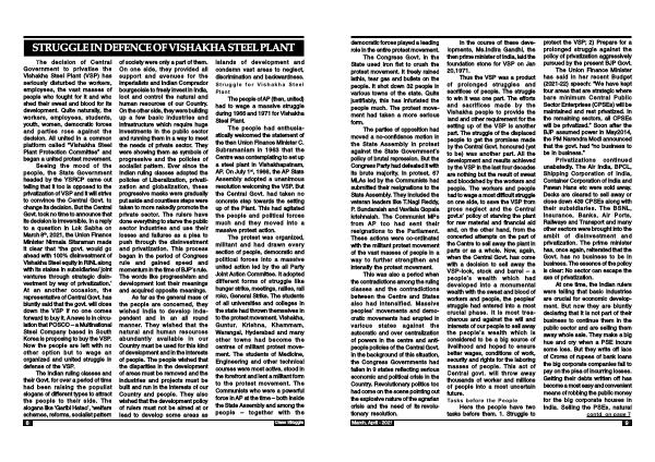 STRUGGLE IN DEFENCE OF VISHAKHA STEEL PLANT