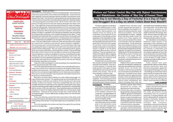 Workers and Toilers ! Conduct May Day with Highest Consciousness and Wakefulness : the Caution of ‘ May Day ’ of Present Times May Day is not Merely a Day of Festivity ! It is a Day of Fight and Struggle !! It is a Day on which Toilers Shed their Blood !!!