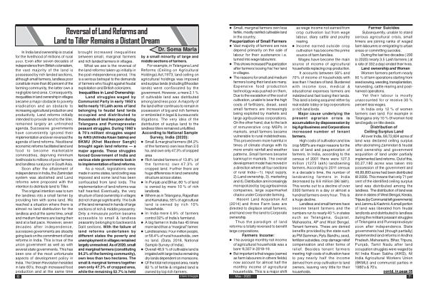 • The reasons for small and medium farmers losing their land are many . Expensive food production technology was pushed on them , Due to the escalation of the cost of cultivation , unable to bear the high costs of fertilizers , diesel , seed small farmers are increasingly being exploited by markets and large agribusiness corporations . On the other hand , due to the lack of remunerative crop MSPs in markets , small farmers became vulnerable to rural indebtedness . This proved even more harmful in times of climate change with its more erratic rainfall and weather patterns . Small farmers became bankrupt in markets . The overall development model has moved in a direction where all four sections of rural India — 1 ). Input supply , 2 ). Land ownership , 3 ). marketing and 4 ). Distribution are increasingly monopolized by big agribusiness companies , large supermarket chains under Corporate farming .