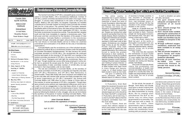 Vol . 13 Issue : 6 June 2021 e-mail : clastrugle @ yahoo . co . in Web site : www . classstruggle . in