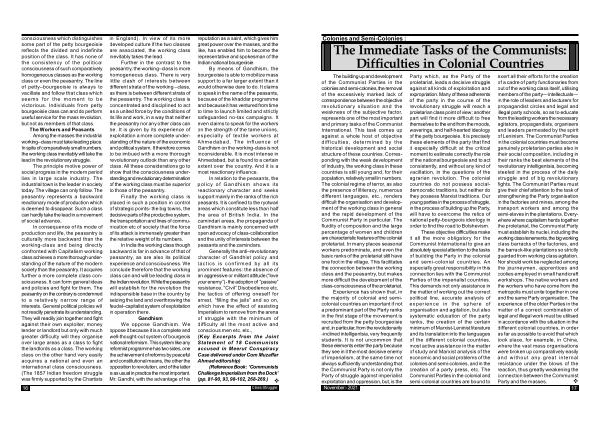 Generally the anti – revolutionary character of Gandhist policy and tactics is confirmed by all its prominent features : the absence of an aggressive or militant attitude (“ love your enemy ”) - the adoption of “ passive ” resistance , “ Civil ” Disobedience etc , the tactics of offering oneself for arrest , “ filling the jails ” and so on , which have the effect of assisting Imperialism to remove from the arena of struggle with the minimum of difficulty all the most active and conscious men etc . etc ., ( Key Excerpts from the Joint Statement of 18 Communists accused in Meerut Conspiracy Case delivered under Com Muzaffar Ahmad editorship )