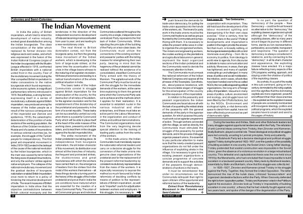 The strike movement of the Indian proletariat now taking place , its independence from bourgeois nationalism , the all-Indian character of this movement , its distribution over almost all the branches of industry , the frequent and protracted strikes , the stubbornness and great resoluteness with which the workers have carried them on , the emergence of leaders from the strikes from the midst of the workers themselves — all these things denote a turning point in the history of the struggle of the Indian proletariat and prove that in India the pre-conditions have matured which are essential for the creation of a mass Communist Party . The union of all Communist groups and individual