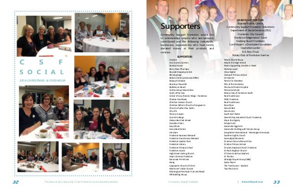 C S F S O C I A L 2016 CHRISTMAS @ CHISHOLM 32 The measure of a community is how it treats its most vulnerable members