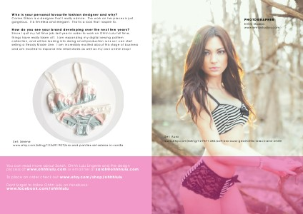 You can read more about Sarah, Ohhh Lulu Lingerie and the design process at www. ohhhlulu. com or email her at sarah @ ohhhlulu. com
