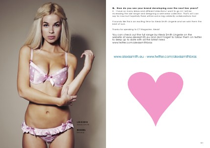 You can check out the full range by Alexis Smith Lingerie on the website at www. alexissmith. eu and dont forget to follow them on twitter to keep up to date with all the latest news www. twitter. com / alexissmithbras