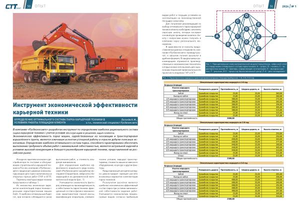 В компании « Русбизнесавто » разработан инструмент по определению наиболее рационального состава парка карьерной техники с учётом условий эксплуатации и решения задач клиента . Экономическая эффективность парка машин , задействованных на экскавации и транспортировке взрыхлённого грунта , является ключевым аспектом успешной работы в отрасли добычи полезных ископаемых . Определение наиболее оптимального состава парка , способного гарантированно обеспечить выполнение требуемого объёма работ с минимальной себестоимостью , является актуальной задачей в условиях высокой конкуренции и большого разнообразия карьерной техники , представленной на российском рынке .