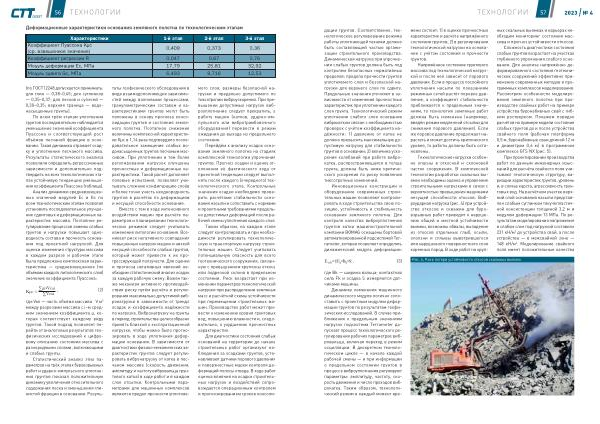 57 2023 / № 4 дации грунтов . Соответственно , технологическое регулирование режима работы уплотняющей техники должно быть составляющей частью организации строительного производства . Динамическая нагрузка при упрочнении слабых грунтов должна быть под контролем безопасных нормативных пределов : предела прочности грунтов уплотняемого слоя и безопасной нагрузки для верхнего слоя по сдвигу . Предельные значения уточняют в зависимости от изменения прочностных характеристик при уплотнении каждого слоя грунта . Технологический режим уплотнения слабого слоя основания виброкатком связан с необходимостью проверок с учётом коэффициента надёжности : 1 ) давление от катка не должно превысить максимальную допустимую нагрузку для стабильности грунтов в основании ; 2 ) величина ускорения колебаний при работе виброкатка , распространяющаяся в толще грунта , должна быть ниже критического ускорения по риску появления тиксотропных изменений .