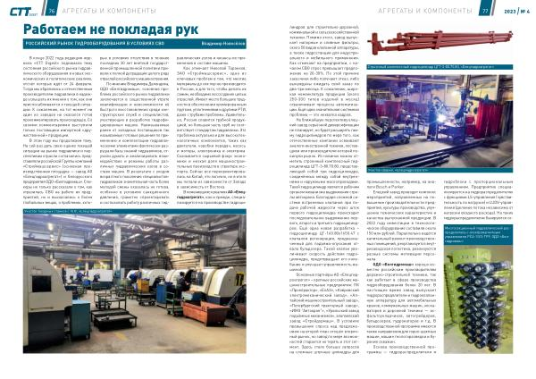 В конце 2022 года редакция журнала « CTT Digest » поднимала тему состояния российского рынка гидравлического оборудования в новых экономических и политических реалиях , отсчёт которых идёт от 24 февраля . Тогда мы обратились к отечественным производителям гидравлики в надежде услышать их мнения о том , как они приспосабливаются к текущей ситуации . К сожалению , на тот момент ни один из заводов не оказался готов прокомментировать происходящее . Со своими комментариями выступили только поставщики импортной « дружественной » продукции .