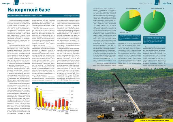 27 2022 / № 1 ностроительный завод серийно выпускал 16-тонный кран . Во второй половине 1980-х годов одесский Завод им . Январского восстания изготовил промышленную партию короткобазовых кранов грузоподъёмностью 25 и 40 т . В 1991 году на юргинском заводе модернизировали выпускаемую модель , подняв её грузоподъёмность до 20 т , с 2003 года завод производил 25-тонный кран КС-5871 . В 2000-е годы объёмы выпуска этой машины составляли порядка 10-30 единиц в год . Во второй половине 2010-х годов производство кранов было свёрнуто . Самарский завод « Сокол » ( ныне не существующий ) тоже внёс свою лепту в производство короткобазовых кранов : с конца 1990-х до конца 2000-х он собирал в небольших количествах сити-краны по лицензии компании Compact Truck . В середине 2000-х годов была предпринята ещё одна попытка наладить выпуск отечественных короткобазовых кранов . В ту пору совместными усилиями НИИ краностроения , Брянского автомобильного завода и завода « Газпром-кран », входивших в состав холдинга « НАМС », был создан короткобазовый кран КС-59713 « Ивановец » грузоподъёмностью 32 т , однако в серийное производство он не пошёл .