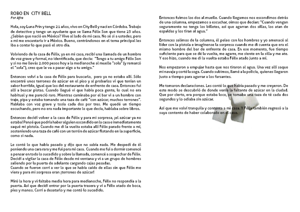 Me tomaron declaraciones. Les conté lo que había pasado y me creyeron. De este modo se descubrió de donde venía la faltante de azúcar en la ciudad. Que por cierto, era porque estaba loco, se tomaba una taza de té cada dos segundos y lo odiaba sin azúcar.