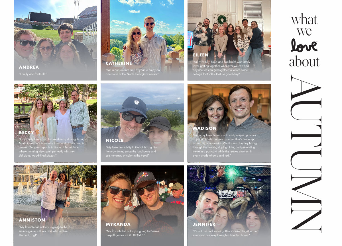 " Our family loves crisp fall weekends, driving through North Georgia’ s mountains to marvel at the changing leaves. Our go-to spot is Trattoria di Montaluce, where stunning views pair perfectly with their delicious, wood-fired pizzas."