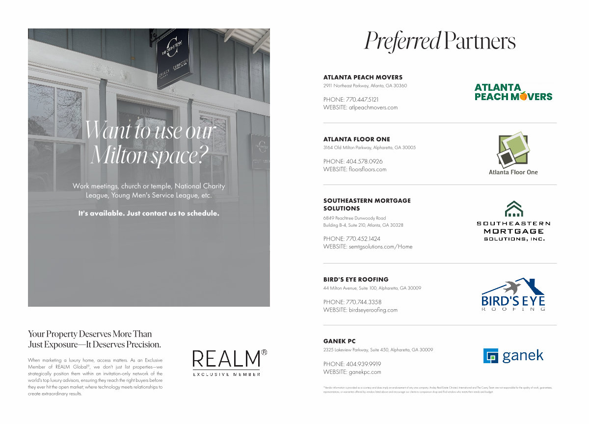 * Vendor information is provided as a courtesy and does imply an endorsement of any one company. Ansley Real Estate Christie’ s International and The Cueny Team are not responsible for the quality of work, guarantees, representations, or warranties offered by vendors listed above and encourage our clients to comparison shop and find vendors who meets their needs and budget.