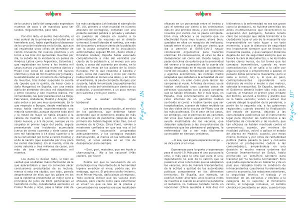 Los datos lo decían todo , si bien es verdad que ocultaban más información de la que aparentaban y que no convenía sacar conclusiones precipitadas de su lectura , menos si esta era rápida ; con todo , parecía desprenderse de ellos que los países en los que la epidemia presentaba un mejor cariz a principios de junio de 2021 pertenecían al hemisferio norte , considerados asimismo el Primer Mundo y ricos , pese a haber sido de los más castigados ( ahí estaba el ejemplo de EE . UU , primero a nivel mundial en número absoluto de contagios ), contaban con una potente sanidad pública o privada y estaban en puestos de cabeza en cuanto a la administración de vacunas en el ámbito universal . Israel lideraba el ranking , con más del cincuenta y seis por ciento de la población con la pauta completa de la inoculación administrada ; seguían EE . UU ., Reino Unido y Emiratos Árabes ; España había vacunado completamente a más del veintidós por ciento de la población y , al menos con una dosis , a cerca del cuarenta por ciento , en la tónica del resto de los países de la Unión Europea . Por lo que respecta a Castilla y León , cerca del cuarenta y cinco por ciento había recibido al menos una dosis , y en torno al veintisiete , la pauta completa . Burgos , por su parte , había inmunizado ( supuestamente ) del todo a más del veintiséis por ciento de su población , y parcialmente , a un poco menos del cuarenta y tres por ciento .