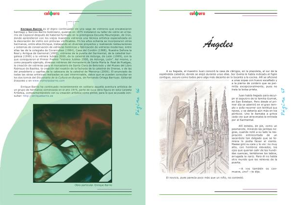 Enrique Barrio es el digno continuador de una saga de vidrieros que encabezaron Santiago y Narciso Barrio Solórzano , quienes en 1975 instalaron su taller de vidrio en el barrio de Capiscol después de haberse formado en la prestigiosa Escuela Maumejean , de Irún , donde aprendieron con los viejos maestros vidrieros una técnica artística especializada en la decoración de vidrio con pinturas vitrificables . En los años ochenta se incorporaron otros hermanos , entre ellos Enrique , trabajando en diversos proyectos y realizando restauraciones y sistemas de conservación de vidrieras históricas y fabricación de vidrieras modernas ; entre ellas las de la colegiata de Covarrubias ( 1984 ), Casa del Cordón ( 1988 ), Nuestra Señora la Real y Antigua de Gamonal ( 1995 ), vidrieras de la puerta del Sarmental , de la catedral burgalesa ( 1999 ) o la vidriera Jubileo 2000 , de la catedral de Astorga , de León ( 1999 ), con la que consiguieron el Primer Premio “ Vidriera Jubileo 2000 , de Astorga , León ”. Así mismo , y como pequeño ejemplo , diversas vidrieras del monasterio de Santa María la Real de Huelgas , la creación de vidrieras para el monasterio de Santa Clara de Belorado y del Museo del Libro Fadrique de Basilea , la creación del rosetón de la fachada de la catedral de Orense , y de las del presbiterio y capillas de la cabecera de la catedral de Menorca ( 2006 ). El enunciado de todas las obras artísticas realizadas es casi interminable , datos que se pueden consultar en los dos tomos del Diccionario de la Cultura en Burgos , de Fernando Ortega Barriuso . Editorial Dossoles y en