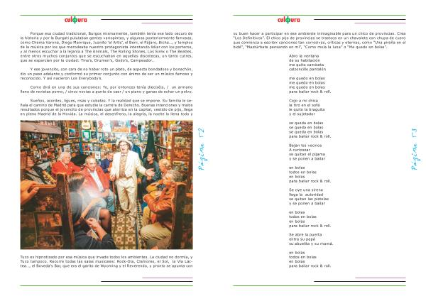 su buen hacer a participar en ese ambiente inimaginable para un chico de provincias . Crea “ Los Definitivos ”. El chico pijo de provincias se trastoca en un chavalote con chupa de cuero que comienza a escribir canciones tan corrosivas , críticas y eternas , como “ Una piraña en el bidé ”, “ Mastúrbate pensando en mí ”, “ Como mola la luna ” o “ Me quedo en bolas ”.