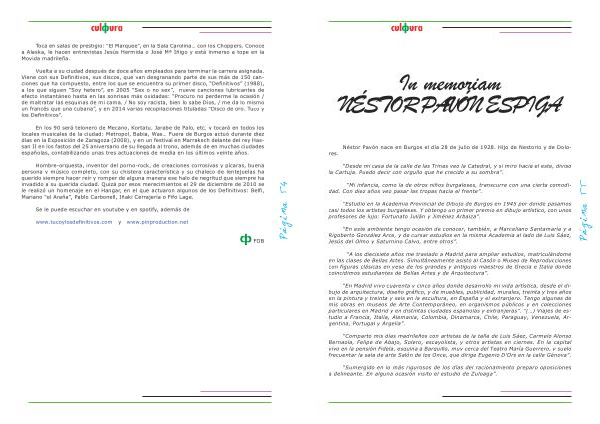 Hombre-orquesta , inventor del porno-rock , de creaciones corrosivas y pícaras , buena persona y músico completo , con su chistera característica y su chaleco de lentejuelas ha querido siempre hacer reír y romper de alguna manera ese halo de negritud que siempre ha invadido a su querida ciudad . Quizá por esos merecimientos el 29 de diciembre de 2010 se le realizó un homenaje en el Hangar , en el que actuaron algunos de los Definitivos : Belfi , Mariano “ el Araña ”, Pablo Carbonell , Iñaki Cerrajería o Fifo Lage .