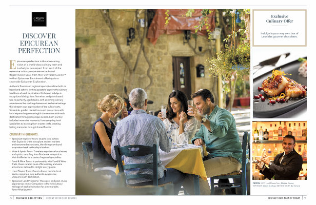 • Epicurean Land Programs : These pre- and post-cruise experiences immerse travelers in the rich culinary heritage of each destination for a memorable , flavor-filled journey .