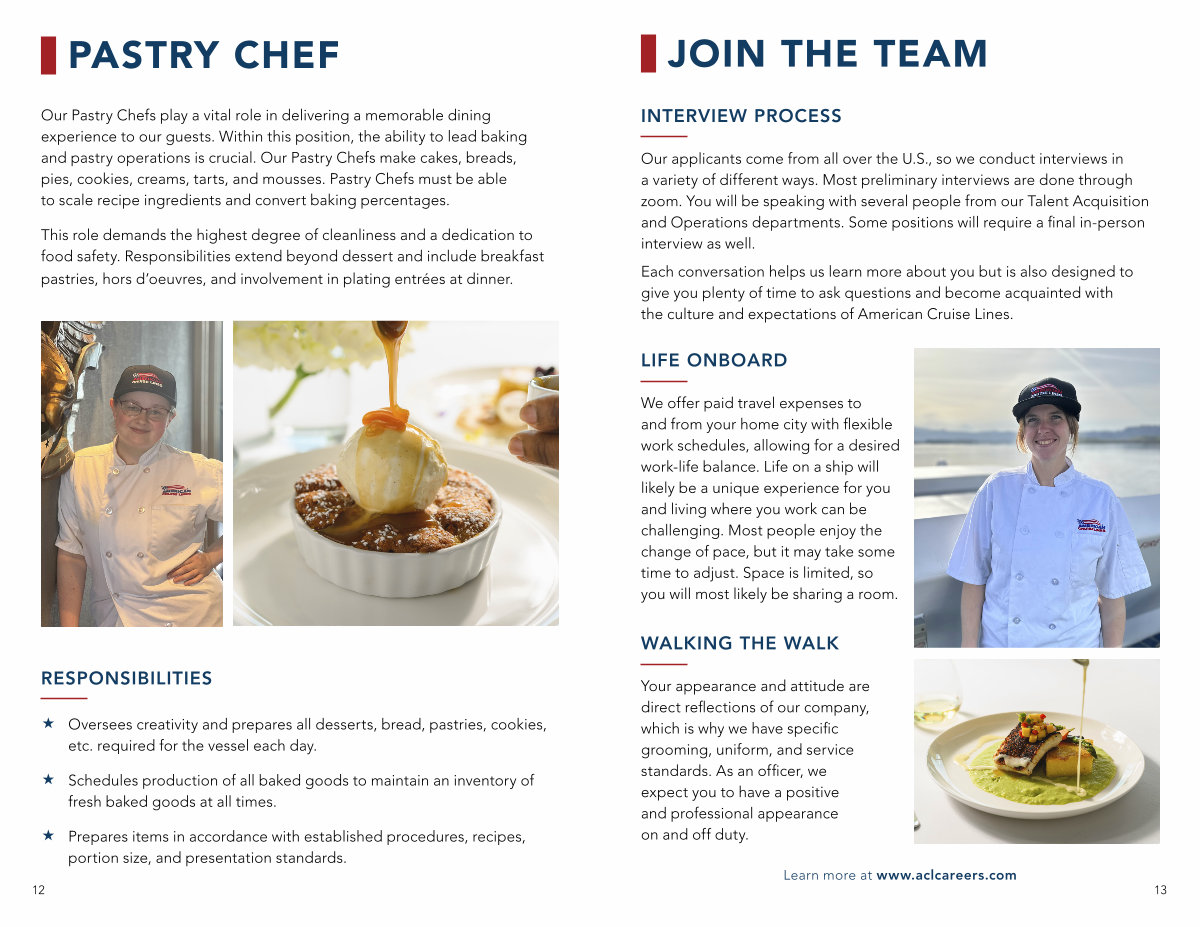 Each conversation helps us learn more about you but is also designed to give you plenty of time to ask questions and become acquainted with the culture and expectations of American Cruise Lines .