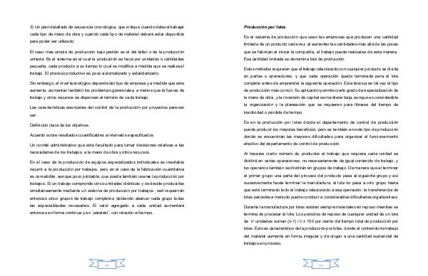 Las características esenciales del control de la producción por proyectos parecen