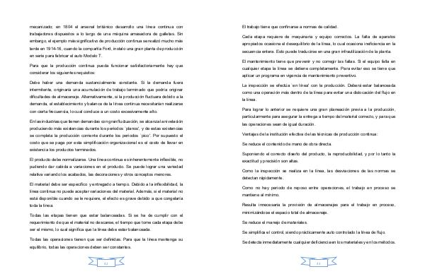 Para que la producción continua pueda funcionar satisfactoriamente hay que