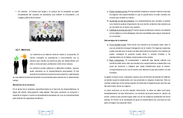 exitosa. El mentor es el encargado de guiar al emprendedor por una hoja de ruta