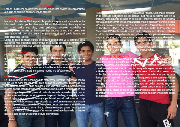 Esta es una reseña de los jovenes creadores de ésta revista, la cual contiene a lo que se quieren dedicar cuando crezcan.