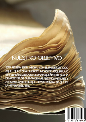 esta revista está hecha con el fin de que todo aquel que tenga la oportunidad de adquirirla o simplemente leerla, se de una pequeña refrescada de arte y se de cuenta de que algunos pintores y artistas han hecho que complementan lo que es la historia del arte..