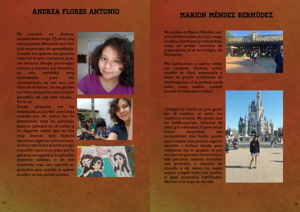 Mi nombre es Marion Méndez, nací el 10 de Noviembre de 2003, tengo 14 años, 2 hermanos y a mis padres, estoy en primer semestre de preparatoria en el tecnológico de Monterrey.