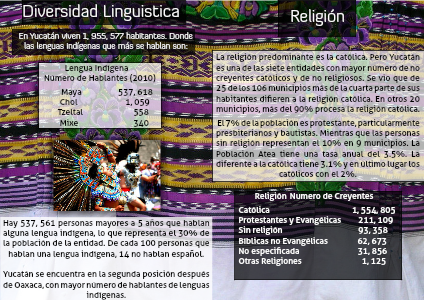La religión predominante es la católica. Pero Yucatán es una de las siete entidades con mayor número de no creyentes católicos y de no religiosos. Se vio que de 25 de los 106 municipios más de la cuarta parte de sus habitantes difieren a la religión católica. En otros 20 municipios, más del 90% procesa la religión católica.