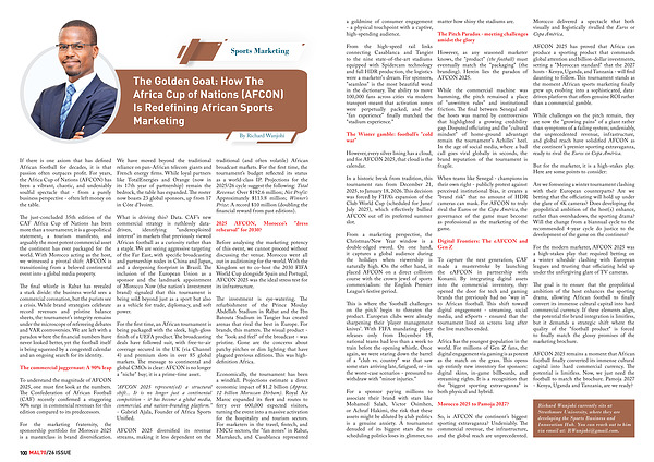 AFCON 2025 has proved that Africa can produce a sporting product that commands global attention and billion-dollar investments, setting a " Moroccan standard " that the 2027 hosts- Kenya, Uganda, and Tanzania- will find daunting to follow. This tournament stands as the moment African sports marketing finally grew up, evolving into a sophisticated, datadriven platform that offers genuine ROI rather than a commercial gamble.