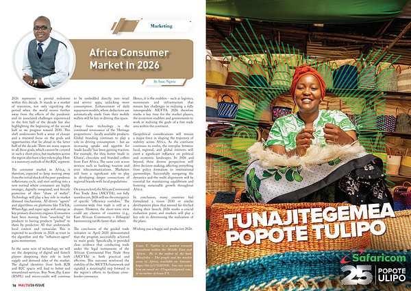 The consumer market in Africa, is therefore, expected to keep moving away from the initial shock of the post-pandemic inflationary cycle, and start settling into a new normal where consumers are highly strategic, digitally integrated, and fiercely protective of their " share of wallet”. Technology will play a key role in market demand mechanisms. AI-driven " agents " and algorithms on platforms like TikTok, WhatsApp, and super-apps will emerge as key primary discovery engines. Consumers have been moving from " searching " for products to having products " pushed " to them by predictive AI that understands local context and vernacular. This is expected to accelerate in 2026 as trust in the algorithm and the " influencer-agent " gains momentum.