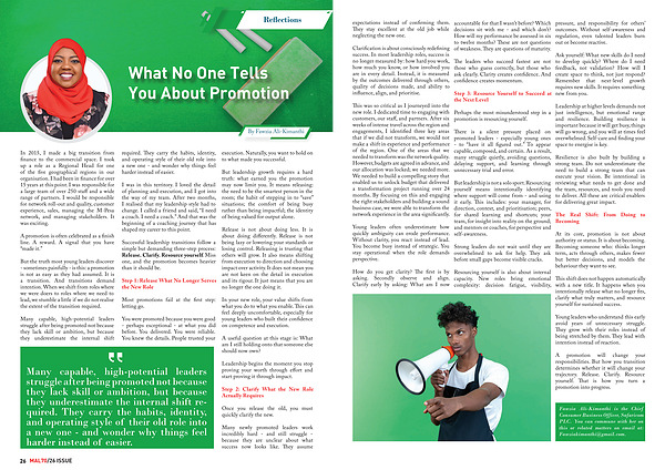 At its core, promotion is not about authority or status. It is about becoming. Becoming someone who: thinks longer term, acts through others, makes fewer but better decisions, and models the behaviour they want to see.