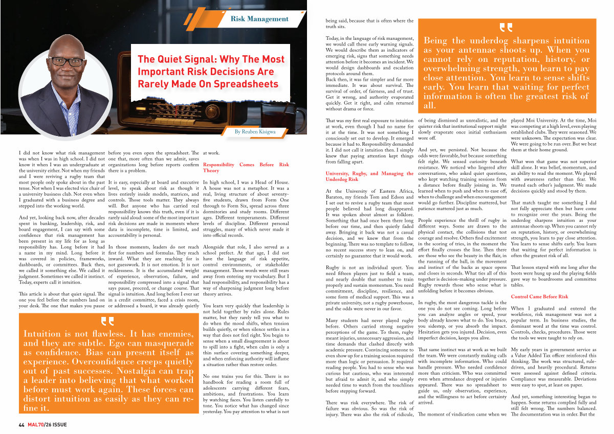 In rugby, the most dangerous tackle is the one you do not see coming. Long before you can analyze angles or speed, your body already knows what to do. You brace, you sidestep, or you absorb the impact. Hesitation gets you injured. Decision, even imperfect decision, keeps you alive.