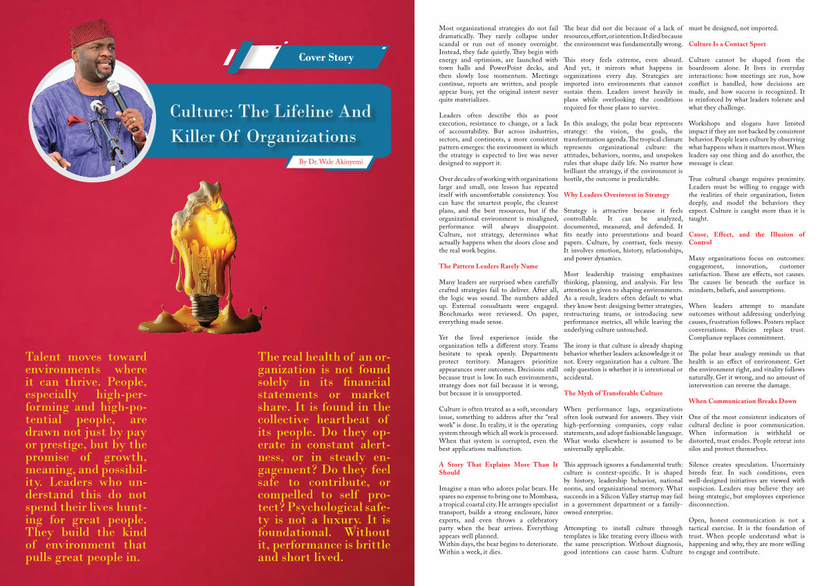 In this analogy, the polar bear represents strategy: the vision, the goals, the transformation agenda. The tropical climate represents organizational culture: the attitudes, behaviors, norms, and unspoken rules that shape daily life. No matter how brilliant the strategy, if the environment is hostile, the outcome is predictable.