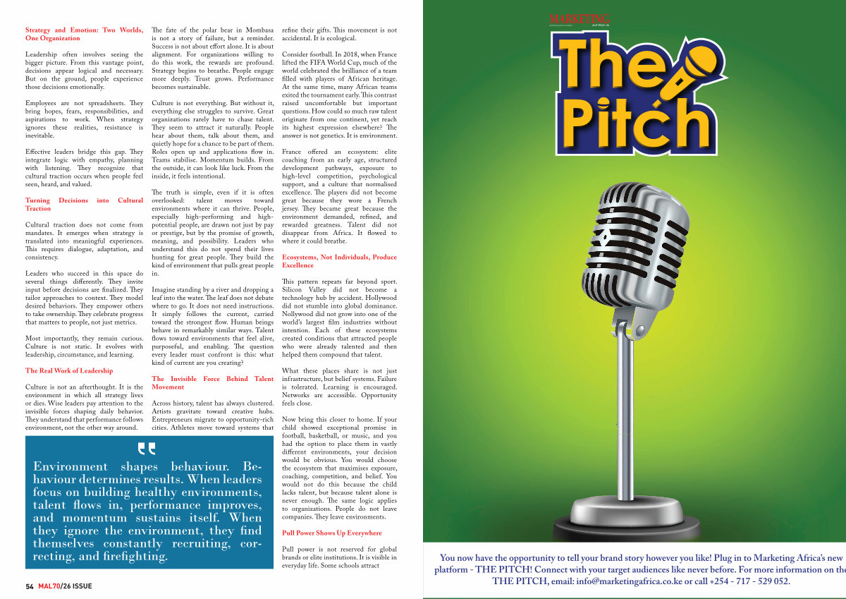 Environment shapes behaviour. Behaviour determines results. When leaders focus on building healthy environments, talent flows in, performance improves, and momentum sustains itself. When they ignore the environment, they find themselves constantly recruiting, correcting, and firefighting. refine their gifts. This movement is not accidental. It is ecological.