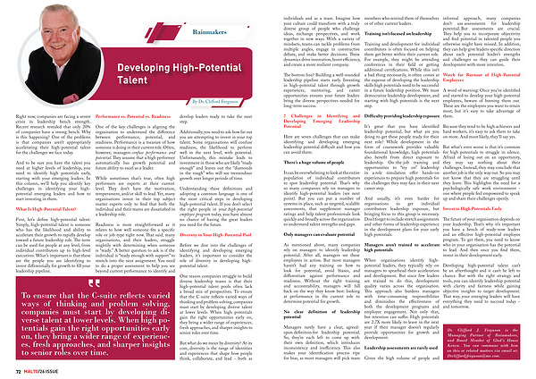 Developing high-potential talent can’ t be an afterthought and it can’ t be left to chance. But with the right strategy and tools, you can identify leadership potential with clarity and fairness while gaining objective insights to target development. That way, your emerging leaders will have everything they need to succeed today- and tomorrow.