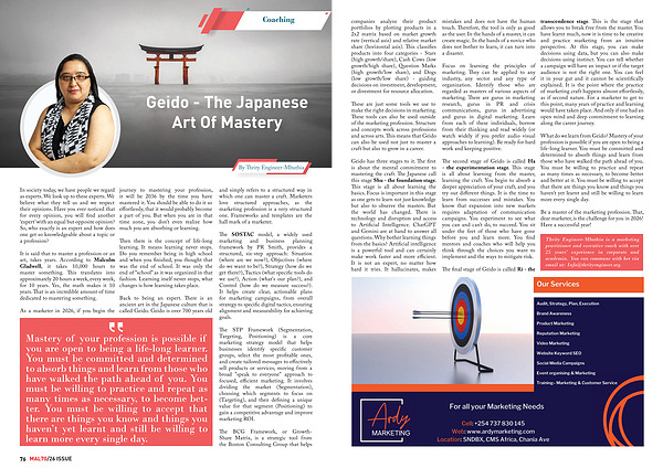 transcendence stage. This is the stage that allows you to break free from the master. You have learnt much, now it is time to be creative and practice marketing from an intuitive perspective. At this stage, you can make decisions using data, but you can also make decisions using instinct. You can tell whether a campaign will have an impact or if the target audience is not the right one. You can feel it in your gut and it cannot be scientifically explained. It is the point where the practice of marketing craft happens almost effortlessly, as if second nature. For a marketer to get to this point, many years of practice and learning would have taken place. And only if one had an open mind and deep commitment to learning along the career journey.