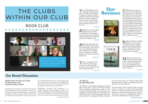 The Book Club met virtually in June and August to discuss author Thomas Mann . The members went on a day trip together to Lübeck , the hometown of Mann and the setting of his novel Buddenbrooks .