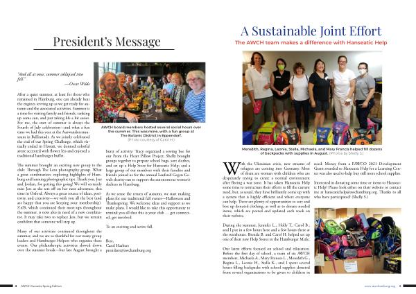 With the Ukrainian crisis , new streams of refugees are coming into Germany . Most of them are women with children who are desperately trying to create a normal environment after fleeing a war zone . It has taken Hanseatic Help some time to restructure their efforts to fill the current need , but , as usual , they have brilliantly come up with a system that is highly efficient and where everyone can help . There are plenty of opportunities to sort and box up donated clothing , as well as to donate needed items , which are posted and updated each week on their website . need . Money from a FAWCO 2021 Development Grant awarded to Hanseatic Help for a Learning Center was also used to help buy still more school supplies .
