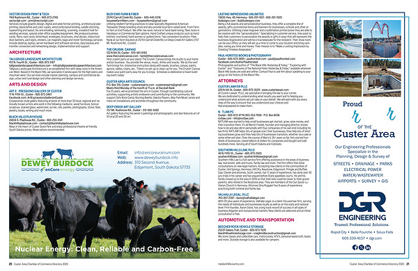 VECTOR DESIGN PRINT & TECH 1164 Rushmore Rd., Custer • 605-673-2740 vectordpt. com • print @ vectordpt. com Services include graphic design, digital and wide format printing, architectural plan printing, black / white and color copies, wire / comb / spiral binding, saddle stitching, typesetting and layout, fax and emailing, laminating, scanning, snowbird mail forwarding services, special order office supplies / equipment. We produce business cards, fliers, rack cards, letterhead, envelopes, brochures, vinyl decals, indoor / outdoor banners, yard signs, stickers, car magnets, bags and more! Technology services include desktop, laptop, server hardware and software services, data backup and transfer conversion and networking design, implementation and support.