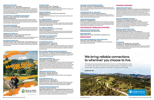 STUDT CONSTRUCTION, INC. 25078 Ruby Road, Custer • 605-673-2760 studtconstruction. com • sawdust @ gwtc. net Celebrating over 30 years as your custom home specialist. Craftsmanship, professionalism and experience in general contracting and construction management. Member Black Hills Home Builders, South Dakota Home Builders and NAHB.