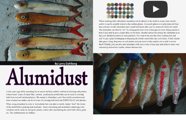 When using alumidust to color a hard plastic lure you plan to mold, simply “dust” the inside