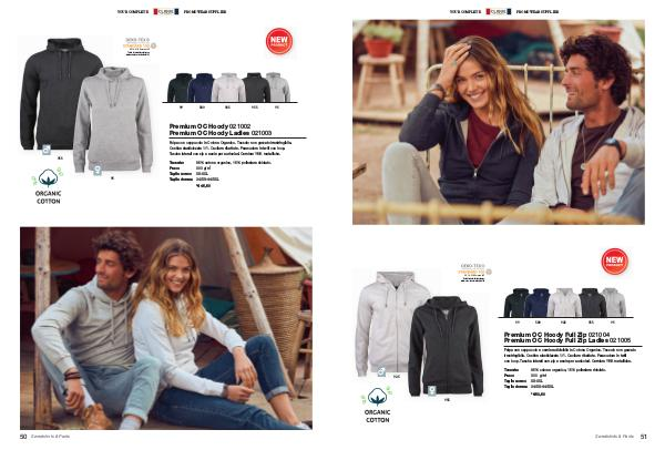 Taglie donna: 85% cotone organico, 15% poliestere riciclato.