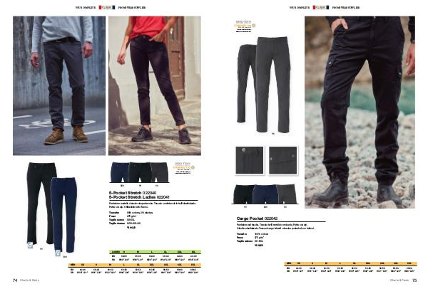 Pantalone sei tasche. Tessuto twill morbido e robusto. Patta con zip.